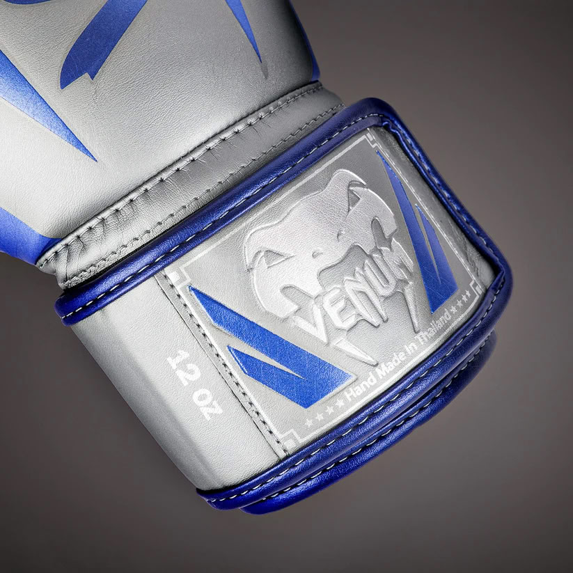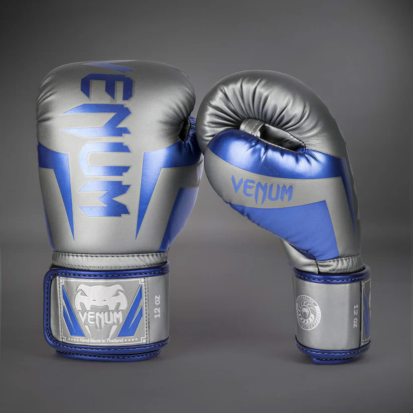 Venum Elite Boxing Gloves Grey Blue Silver