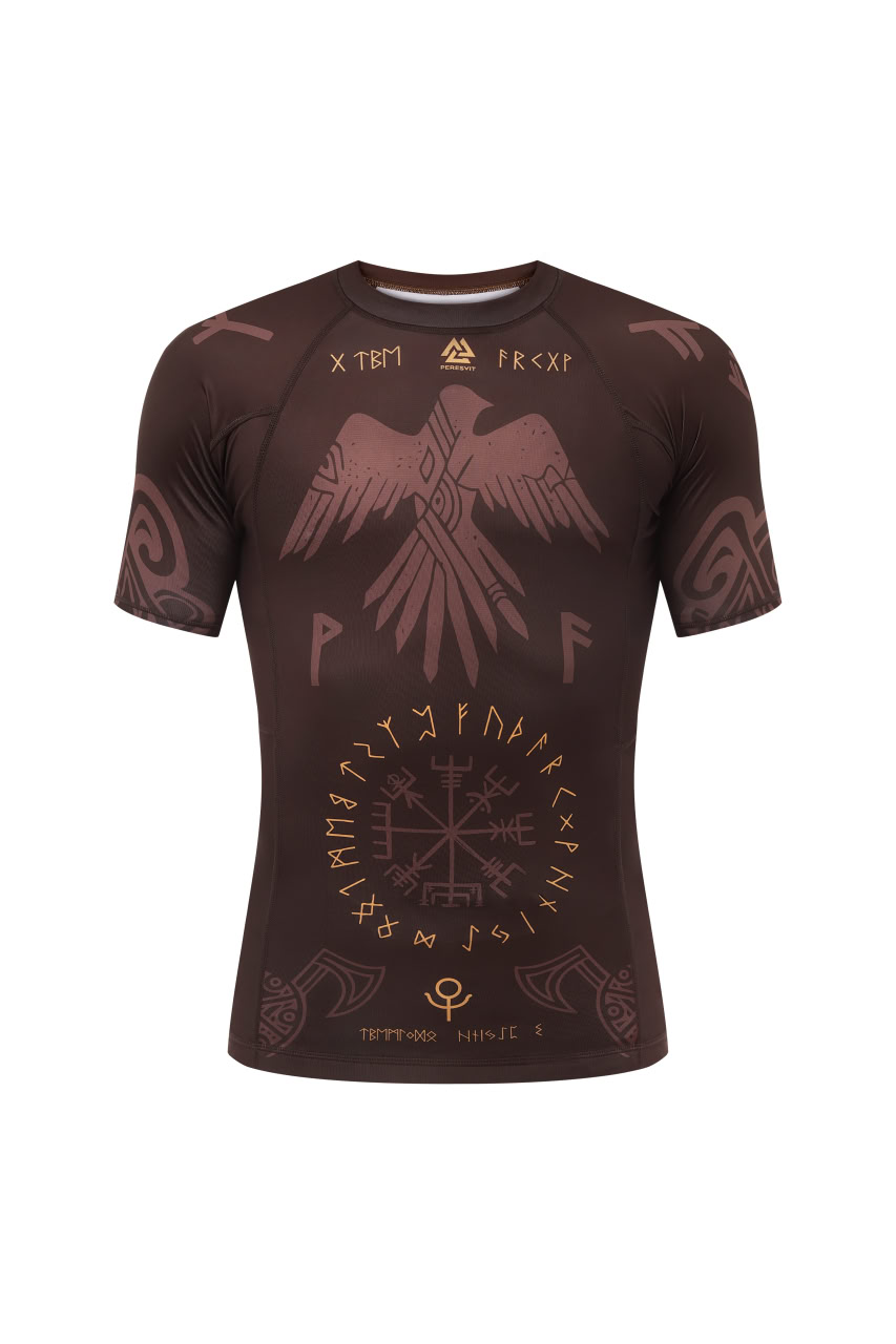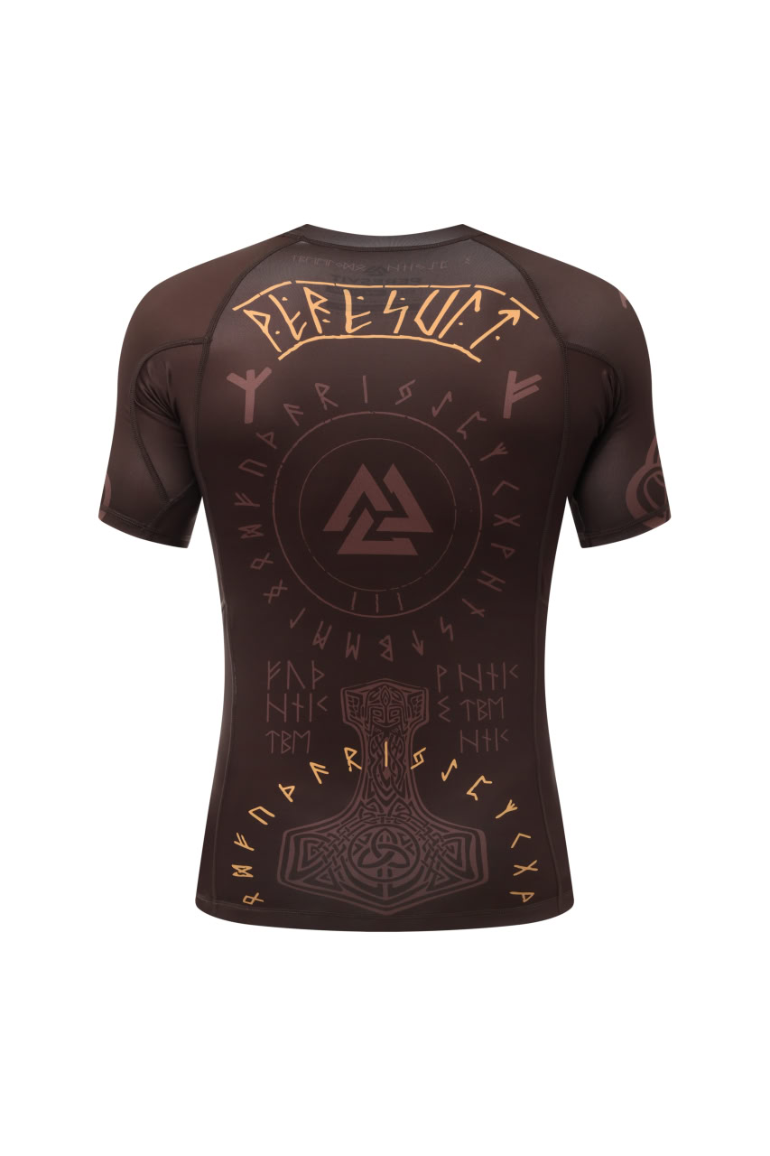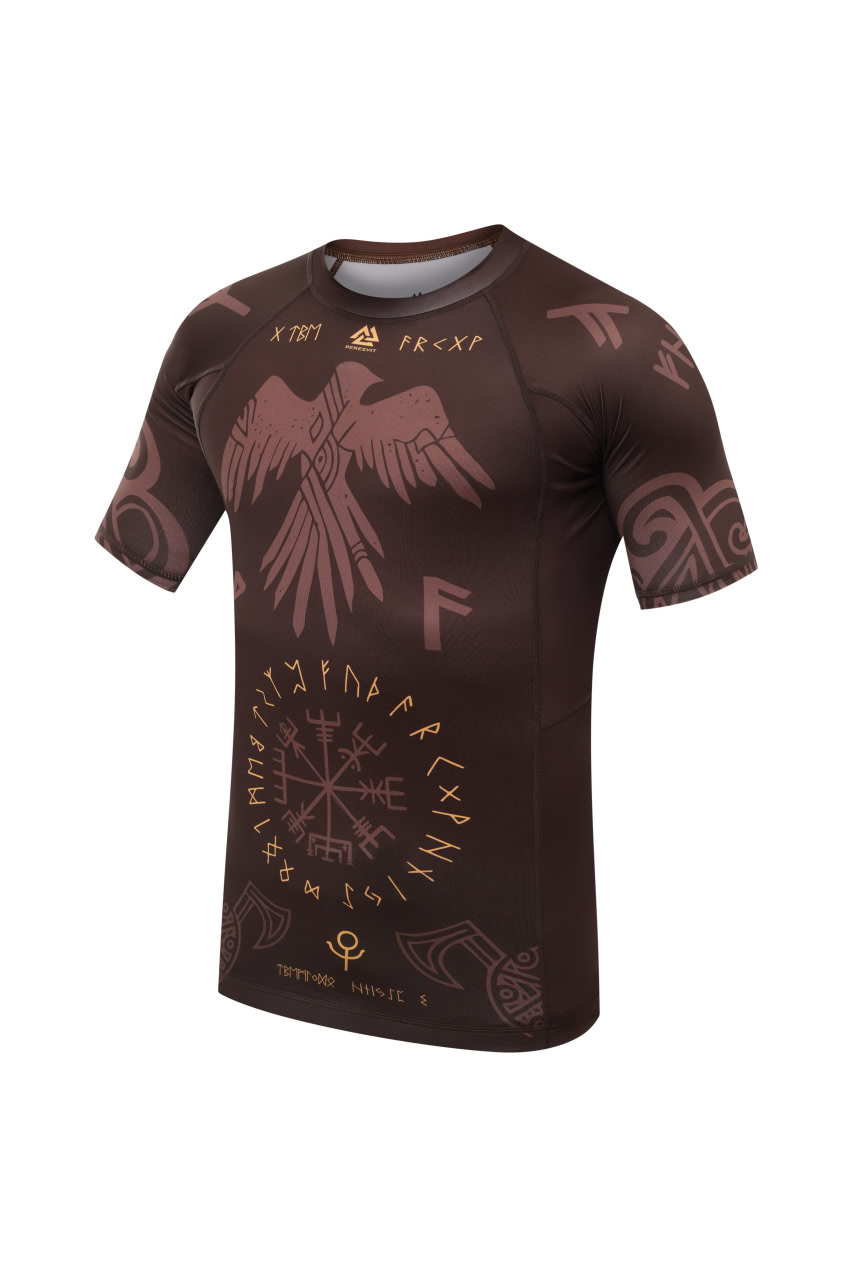 Peresvit Valhalla Rashguard Short Sleeve Brute Brown — a compression short sleeve rashguard for MMA, grappling and wrestling. Tight fit, reinforced seams, sublimated design. Premium quality, distinctive style.