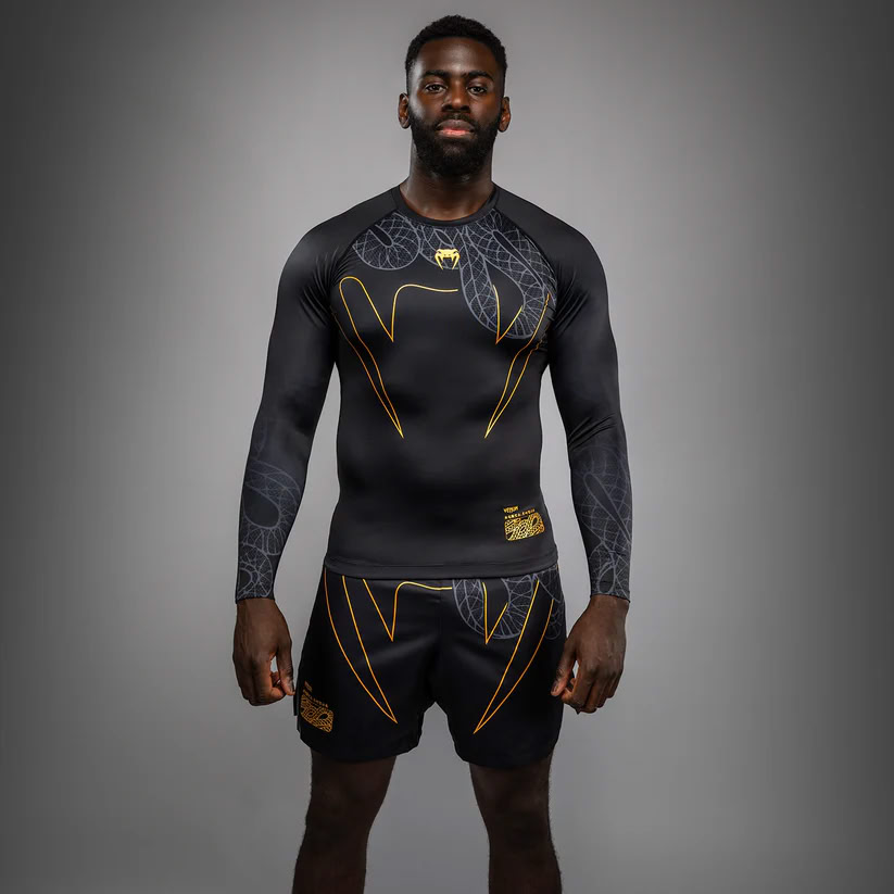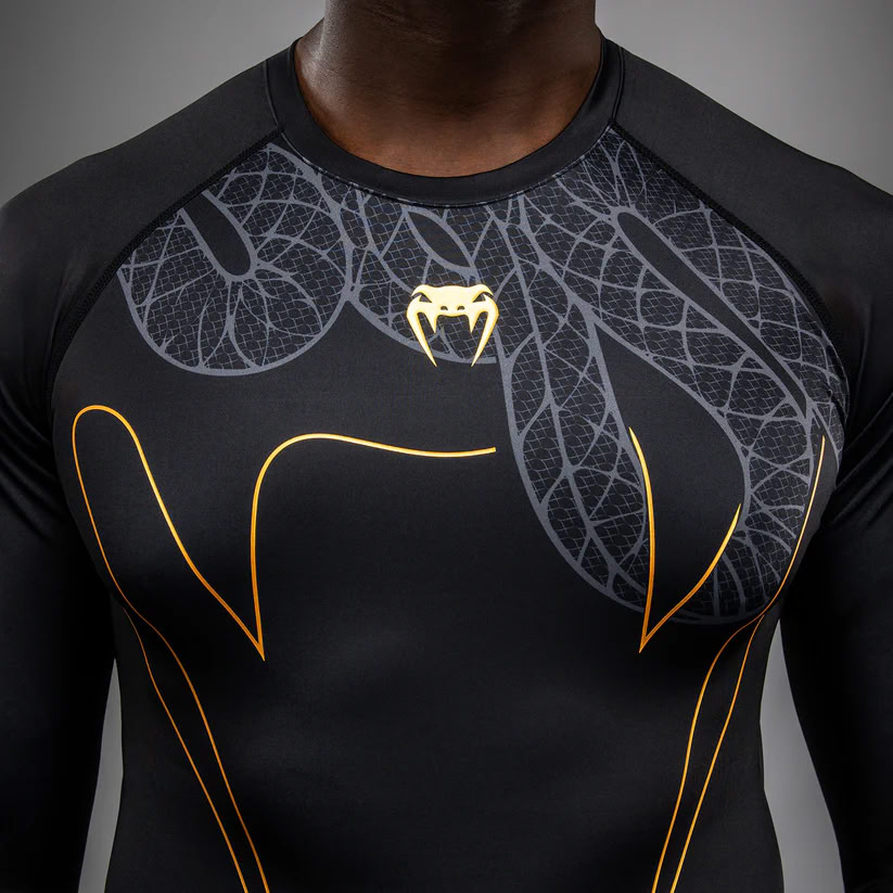 Venum Serpenti Long Sleeve Rashguard Black Silver Gold
