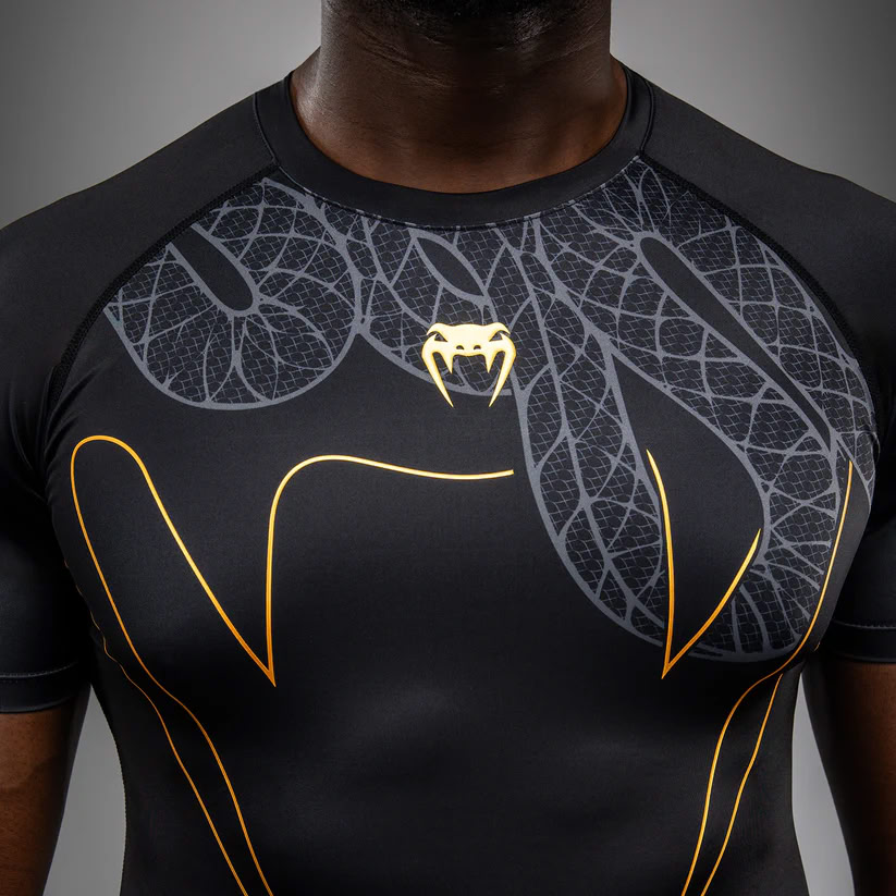 Venum Serpenti Short Sleeve Rashguard Black Silver Gold