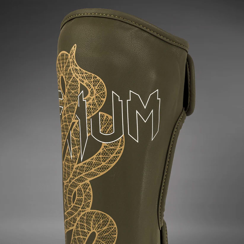 Venum Serpenti Shinguards Khaki Bronze Ivory — повна концентрація на перемозі.