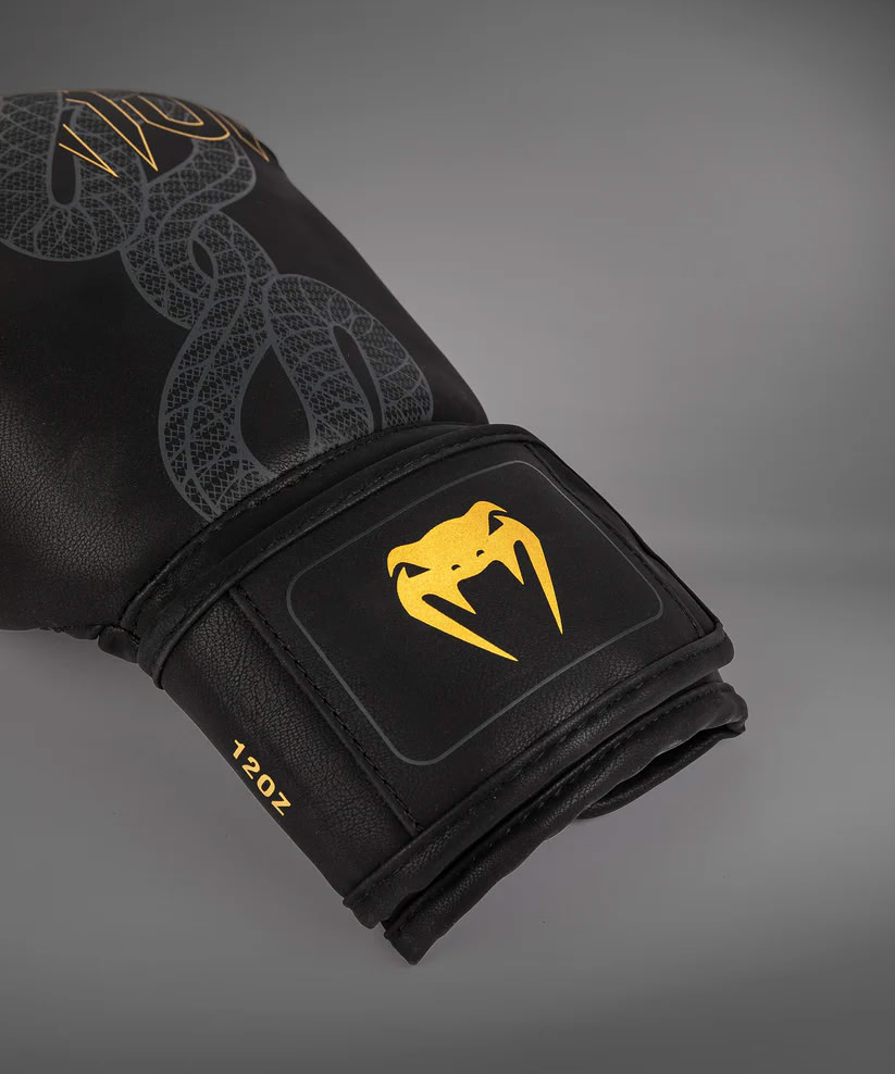 Боксерские перчатки Venum Serpenti Boxing Gloves Black Silver Gold — безмолвная и неумолимая сила змеи.